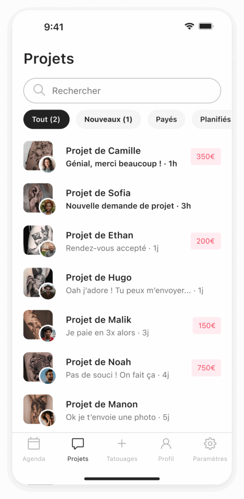 Oui, grĂące Ă la visibilitĂ© offerte par lâapplication et la recherche par carte, GoTattoo peut te mettre en avant auprĂšs de nouveaux clients. Les tatoueurs GoTattooer de niv.1 et niv.2, câest-Ă -dire ceux qui utilisent rĂ©guliĂšrement lâapplication et bĂ©nĂ©ficient du programme de fidĂ©litĂ©, gagnent en visibilitĂ© supplĂ©mentaire. GoTattoo peut tâapporter sur deux plans diffĂ©rents selon tes besoins : si tu as dĂ©jĂ une clientĂšle mais que tu cherches plus de structure et un outil de gestion fiable et complet, tu bĂ©nĂ©ficies de lâoutil pour organiser ton activitĂ© ; si tu nâas pas encore de clientĂšle et que tu cherches de la visibilitĂ©, tu profiteras aussi de cet avantage. Et bien sĂ»r, si tu veux combiner les deux, câest tout Ă fait possible.